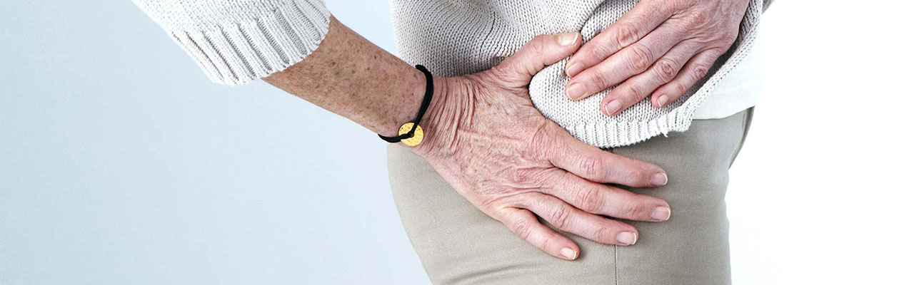 Levar a perna operada para trás e apoiar uma mão na parte inferior das costas, para não forçar a coluna.